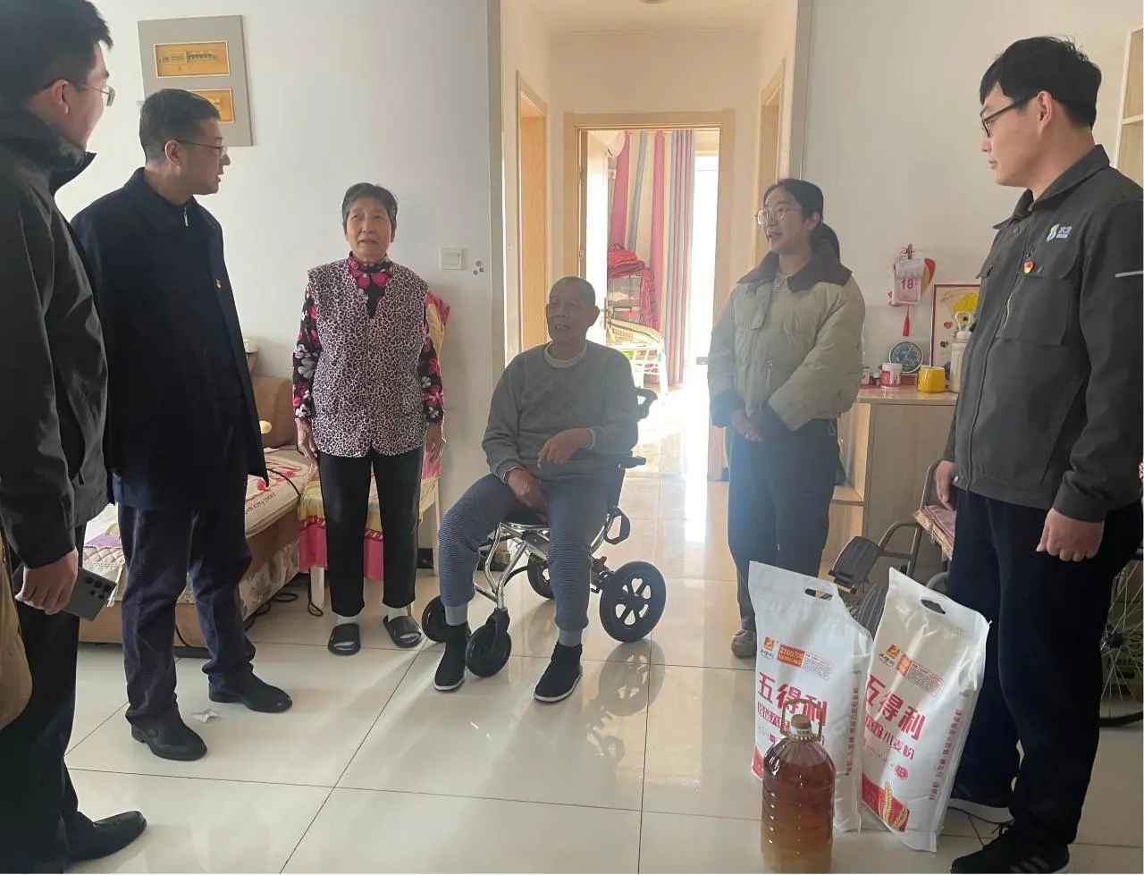 水發(fā)水控集團(tuán)德州區(qū)域聯(lián)合黨支部到安德街道紫云社區(qū)開(kāi)展“雙報(bào)到”志愿服務(wù)活動(dòng)。黨員志愿者們與困難老黨員、群眾親切交談,仔細(xì)詢問(wèn)他們的身體情況和家庭狀況,并為他們送上油、面等慰問(wèn)品和春節(jié)祝福,讓他們切實(shí)感受到黨組織的關(guān)心。