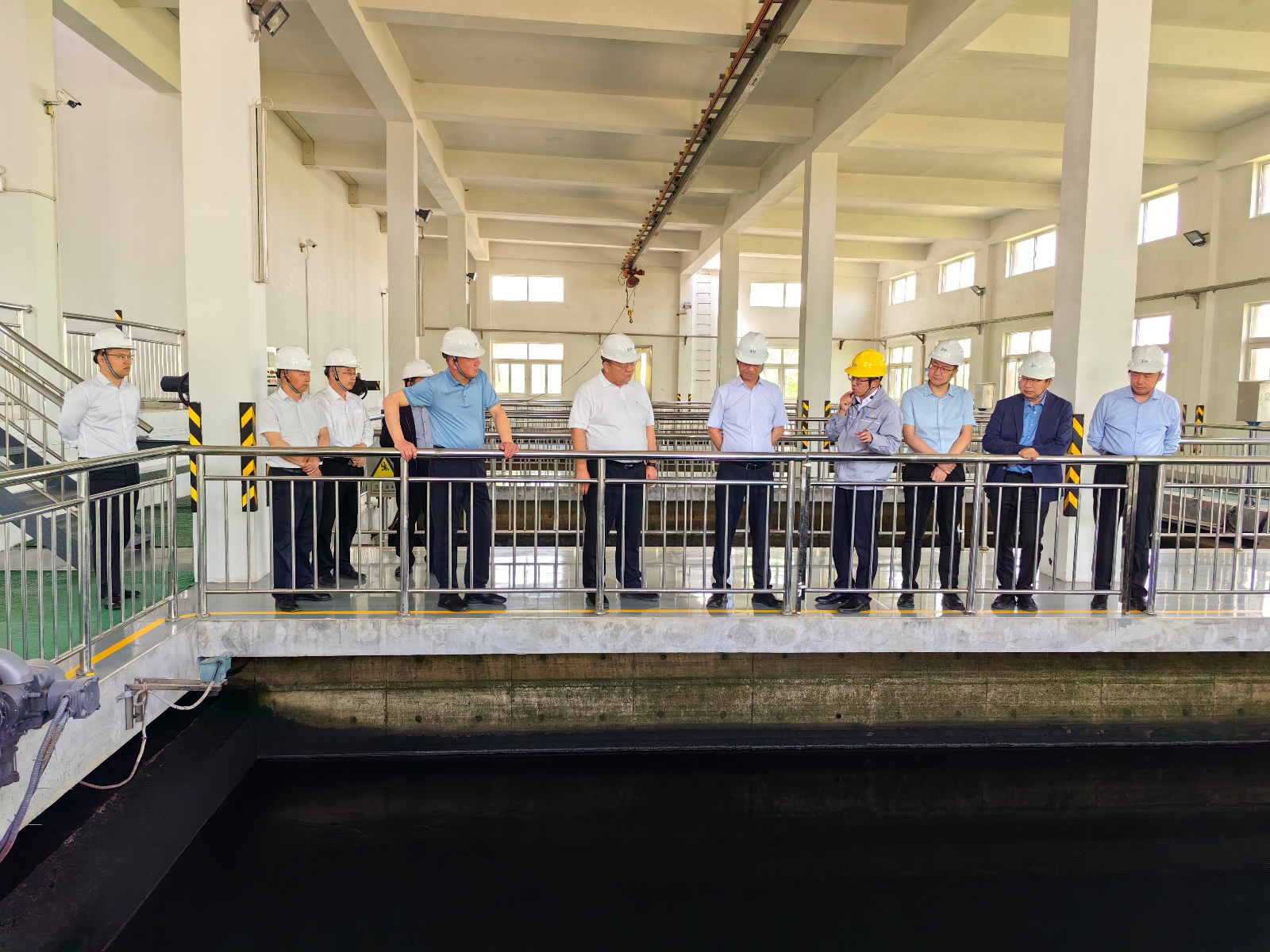 李建軍一行實地考察了濰坊水發(fā)供水集團第二平原水庫、黃水東調(diào)工程濰北二庫加壓泵站、惠澤第二水廠、智慧水務(wù)平臺等生產(chǎn)一線部門。詳細了解了濰坊水發(fā)供水集團供水能力、運營管理情況以及未來發(fā)展規(guī)劃,雙方就原水水質(zhì)指標情況、自來水處理工藝、運營成本管控等方面進行了深入探討。